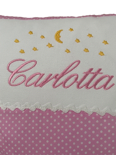 Der Wunschname wird liebevoll mit einem dezenten Sternenhimmel-Motiv bestickt.